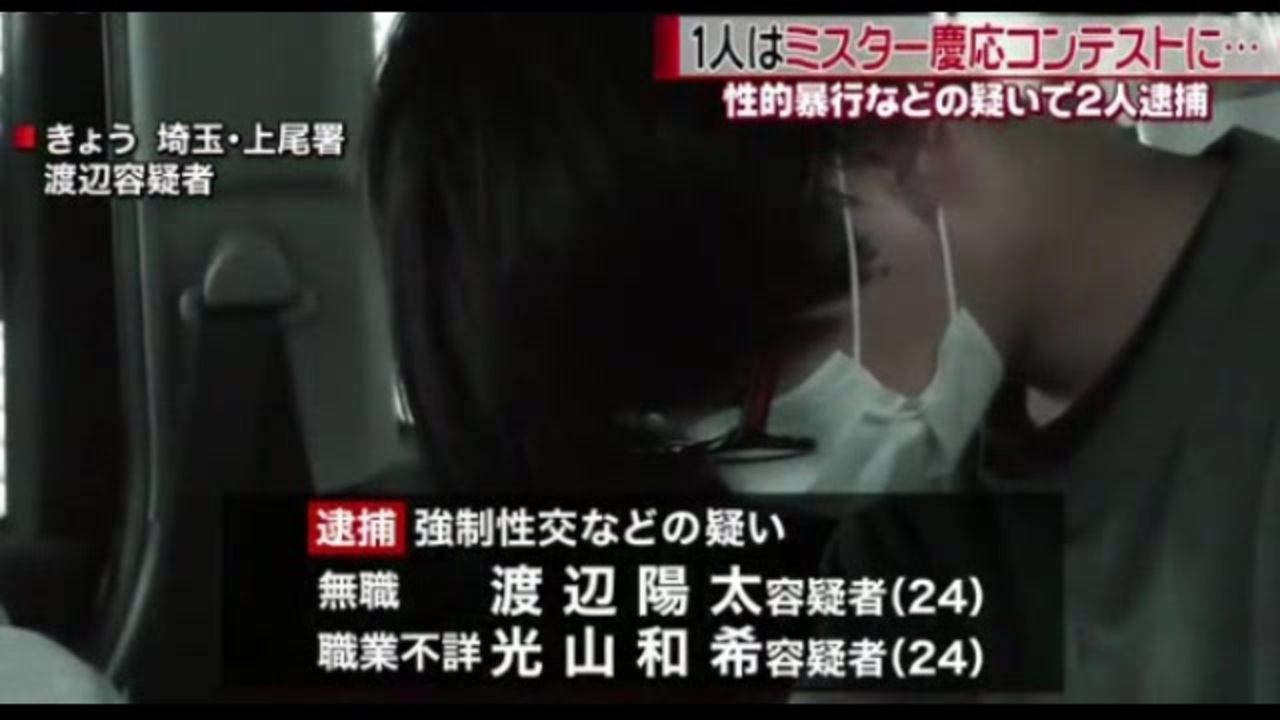 悲報 18年に性的暴行で逮捕された元慶應生二人組 渡辺陽太容疑者 元ミスター慶応 光山和希容疑者 不起訴の2か月後 再び性的暴行を起こし逮捕 同人速報